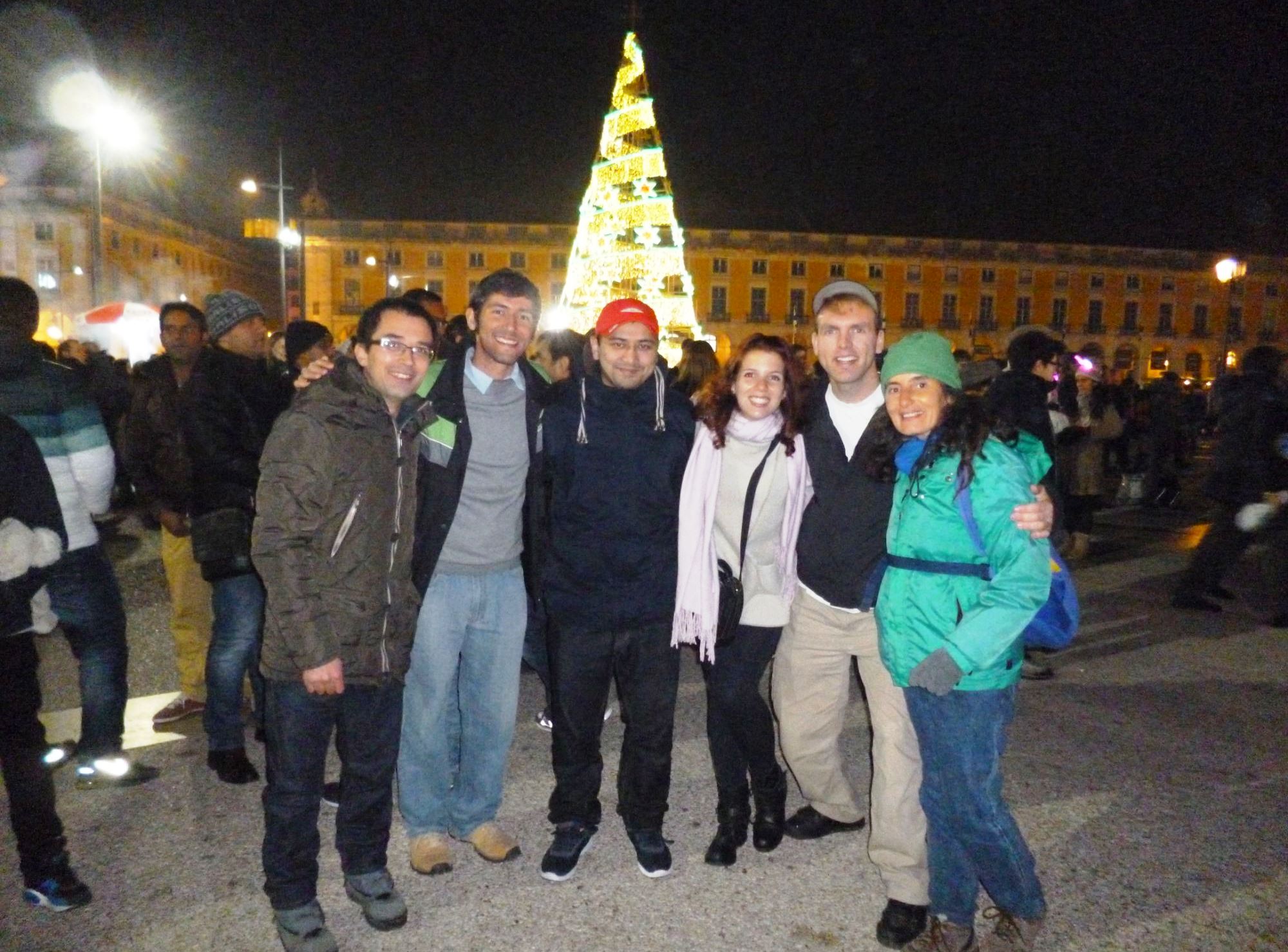 Después de esta dura carrera, me bañé y me fui a cenar a un bar junto a Germán de México, Ricardo de España, Paloma de Brasil, Andreas de Suiza y un chico de Nepal. Todos viajeros solos alojados en el hostel. Cenamos sopa y bacalao. La sopa era realmente deliciosa. Pero la fiesta en Lisboa estaba en Praça do Comércio. Cientos de personas esperábamos el año nuevo. Todo el mundo con botellas, cuernitos rojos y todo tipo de adornos con luces en la cabeza. Un gran escenario con música en vivo para bailar, acompañaba los últimos minutos del año viejo. Las doce nos encontraron a todos mirando unos tan fabulosos fuegos artificiales, que jamás olvidaré. Nunca había visto efectos tan fantásticos realizados con fuegos de artificio. Abrazos y buenos deseos con estos chicos que seguramente nunca más volvería a ver. Bailamos un poco, mientras que en las calles llenas de borrachos, la gente caminaba sobre un piso lleno de vidrios de botellas rotas y vómitos… pero todo con mucha paz. De regreso al hostel, nos comimos los típicos sándwiches de cerdo portugueses que nos costaron 2,50 euros. Con la panza llena, después de la carrera, el baile y los fuegos artificiales me fui a la cama muy cansada, pero feliz. Un año nuevo había comenzado en una nueva ciudad.